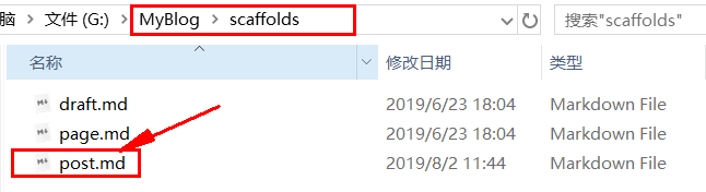 在博客的scaffolds目录下有三个md文档,只需要改post.md即可。