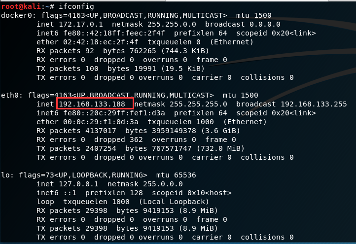 或者使用ifconfig命令查看kali的ip地址,然后使用http://kali的ip地址:8000访问