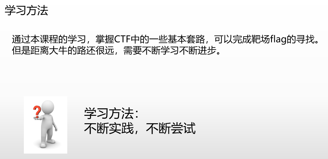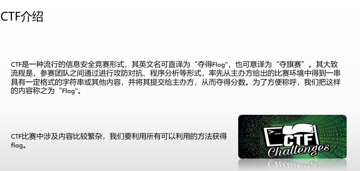 前些日子因为参加CTF比赛,朋友发了我一些CTF的资料,今天整理资料的过程中发现还有这个一系列课程的PPT,为了方便学习查看,将PPT汇总成文档吧。