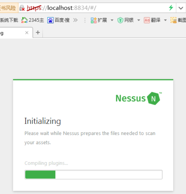 在服务中启动Tenable Nessus服务,浏览器访问https://localhost:8834使用Nessus。
