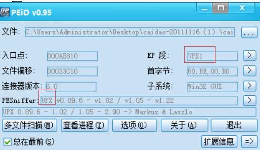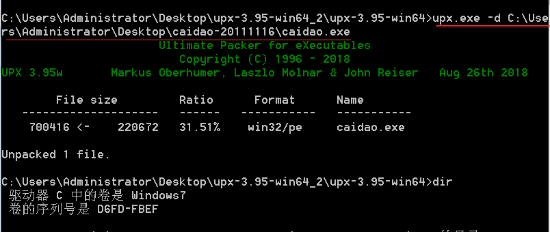 既然加壳了,那就脱壳吧,使用upx脱壳