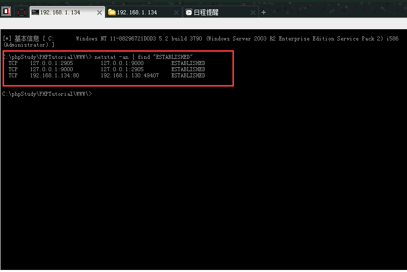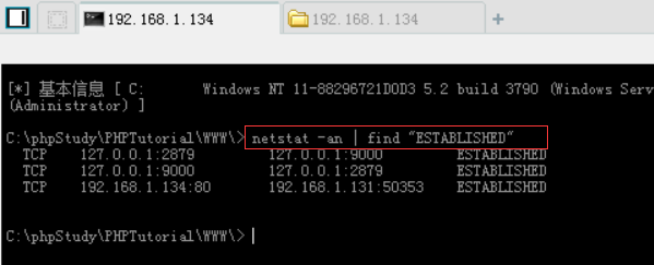 z2=cd /d “C:\phpStudy\PHPTutorial\WWW"&netstat -an | find “ESTABLISHED”&echo [S]&cd&echo [E]