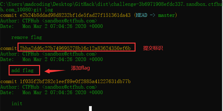 观察发现一共有三次提交,分别是init, add flag 和remove flag.