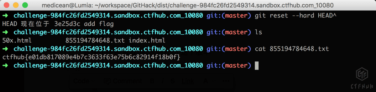 https://writeup.ctfhub.com/Skill/Web/%E4%BF%A1%E6%81%AF%E6%B3%84%E9%9C%B2/Git/83dcefb9.html