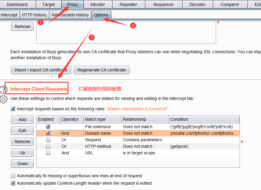 这个表达式规则的意思就是不拦截请求域名以mozilla.com、firefox.com、firefoxchina.cn为结尾的请求。